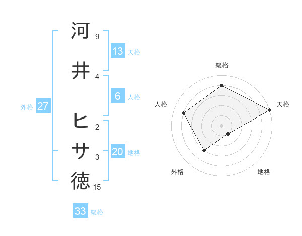 河井 ヒサ徳さんを姓名の画数から五運を鑑定