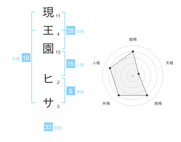 現王園 ヒサさんを姓名の画数から五運を鑑定