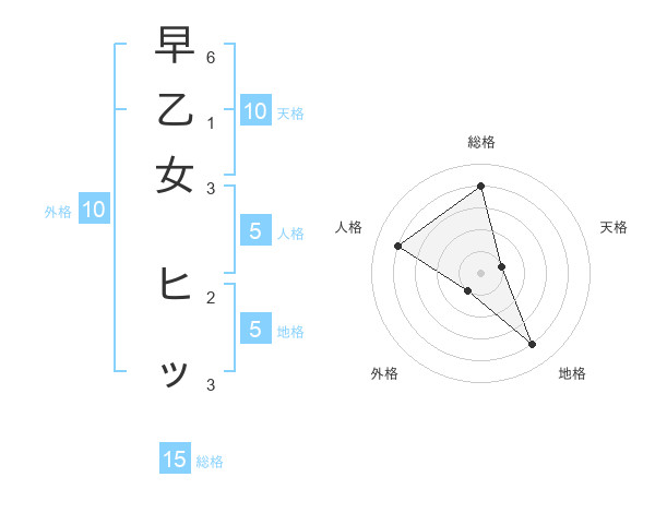 早乙女 ヒッさんの総格は15画の4点!