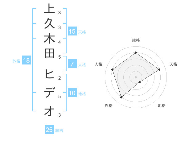 上久木田 ヒデオさんを姓名の画数から五運を鑑定