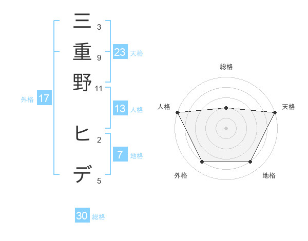 三重野 ヒデさんの天格は23画の5点!