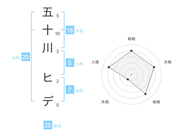 五十川 ヒデさんの天格は18画の4点!