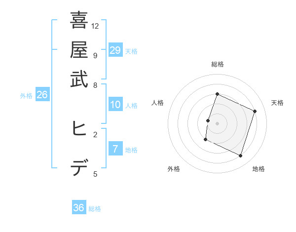 喜屋武 ヒデさんを姓名の画数から五運を鑑定