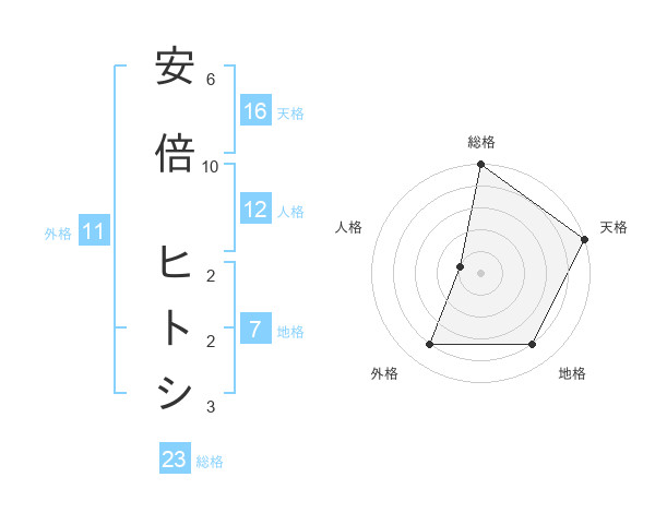安倍 ヒトシさんを姓名の画数から五運を鑑定