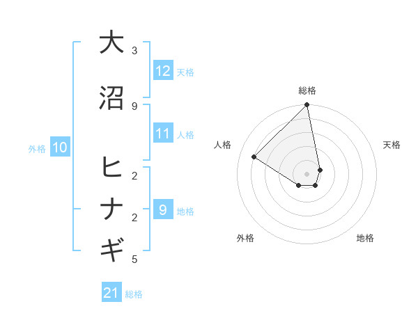 大沼 ヒナギさんを姓名の画数から五運を鑑定