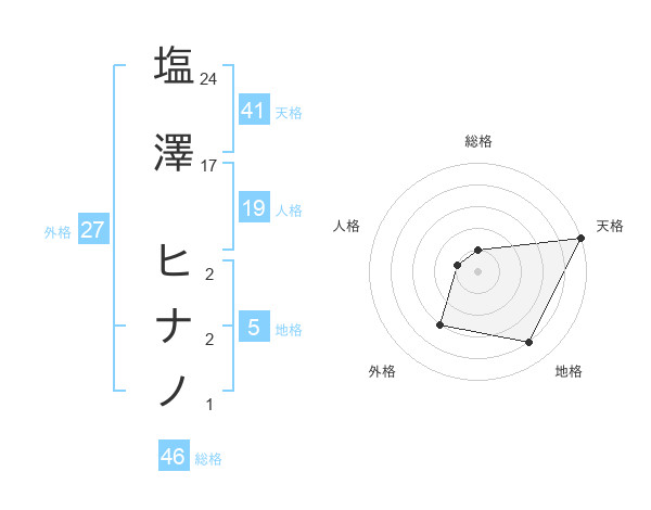 塩澤 ヒナノさんの地格は5画の4点
