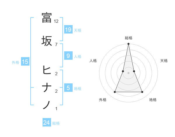 富坂 ヒナノさんの総格は24画の5点!