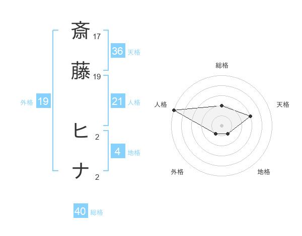斎藤 ヒナさんを姓名の画数から五運を鑑定