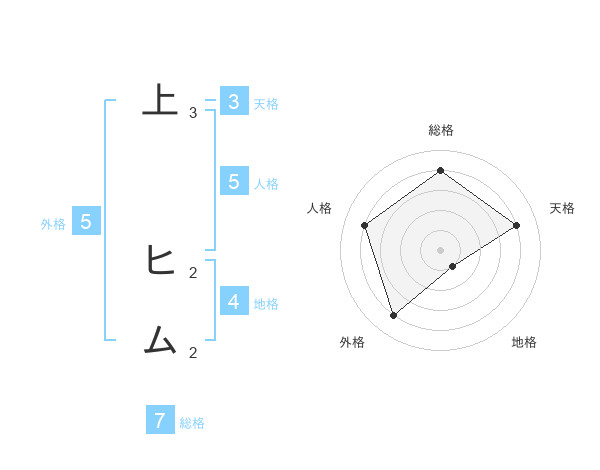 上 ヒムさんを姓名の画数から五運を鑑定