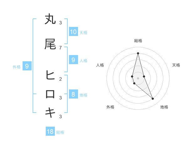 丸尾 ヒロキさんの総格は18画の4点!
