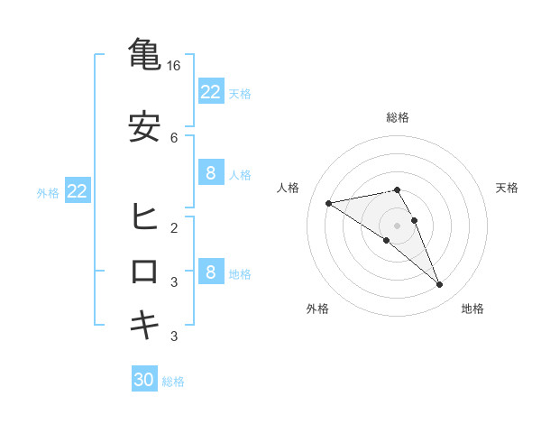 亀安 ヒロキさんを姓名の画数から五運を鑑定