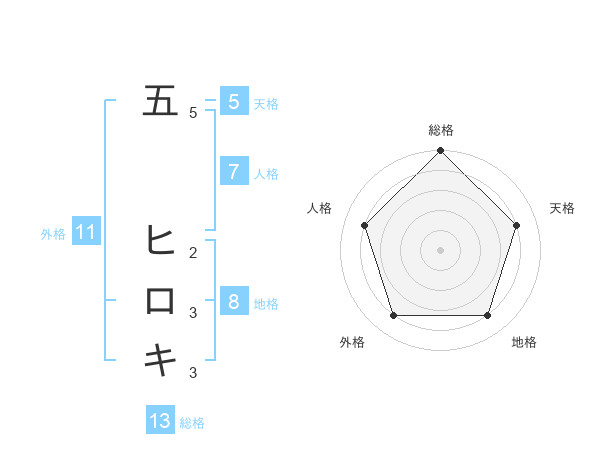 五 ヒロキさんを姓名の画数から五運を鑑定