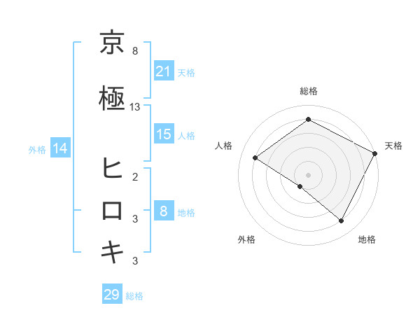 京極 ヒロキさんの天格は21画の5点!