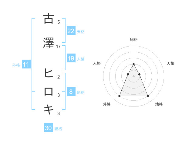 古澤 ヒロキさんの天格は22画の1点!