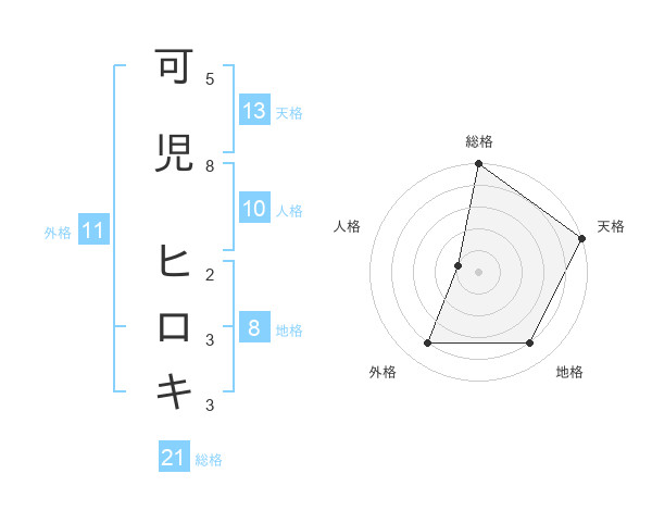 可児 ヒロキさんを姓名の画数から五運を鑑定
