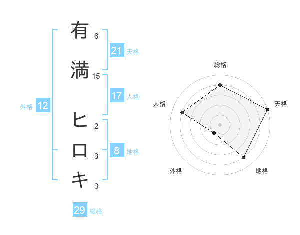 有満 ヒロキさんを姓名の画数から五運を鑑定