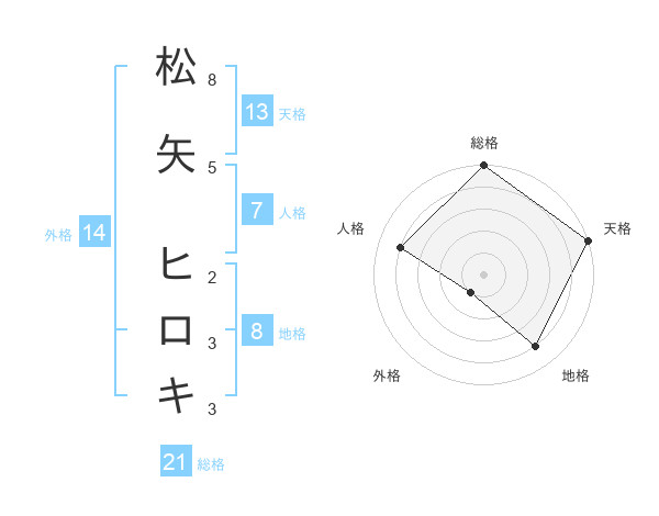松矢 ヒロキさんを姓名の画数から五運を鑑定
