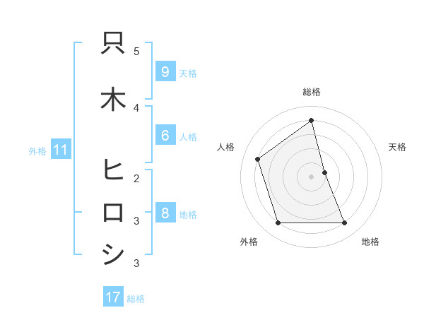 只木 ヒロシさんの総格は17画の4点!
