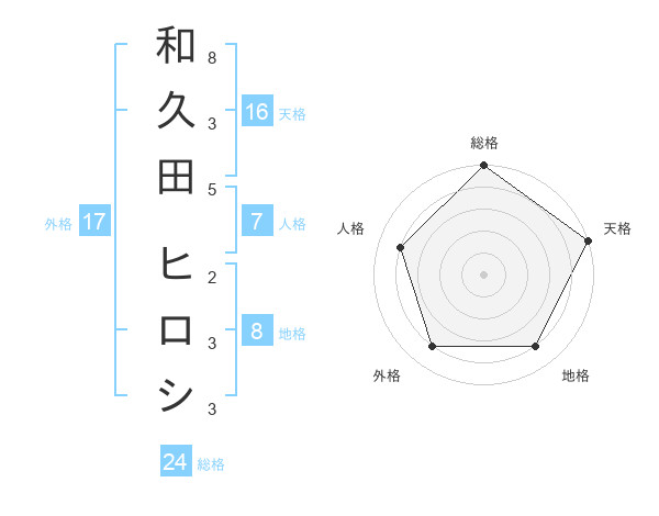 和久田 ヒロシさんを姓名の画数から五運を鑑定