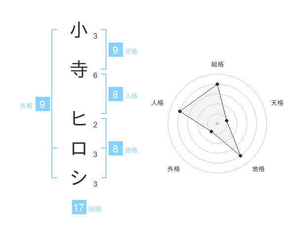 小寺 ヒロシさんを姓名の画数から五運を鑑定