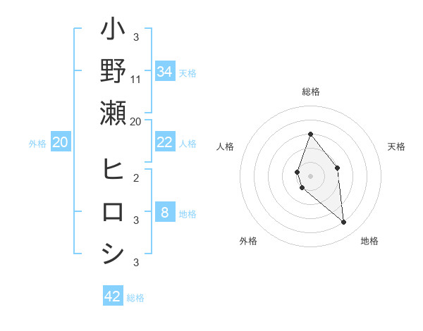 小野瀬 ヒロシさんを姓名の画数から五運を鑑定