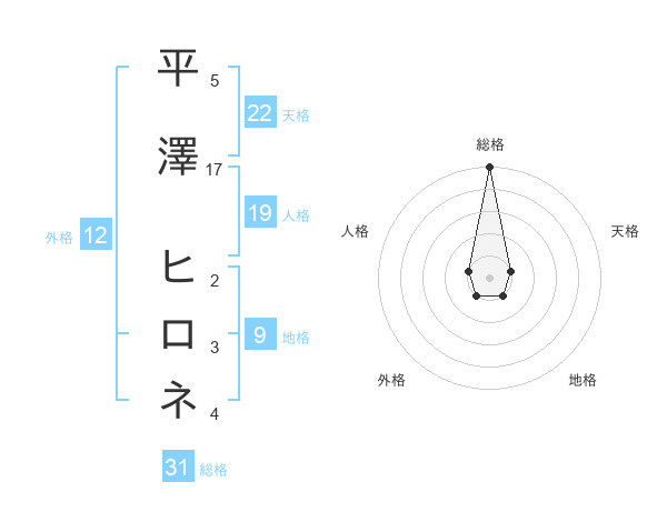 平澤 ヒロネさんの総格は31画の5点!