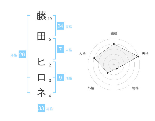 藤田 ヒロネさんを姓名の画数から五運を鑑定