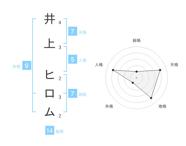 井上 ヒロムさんの天格は7画の4点!