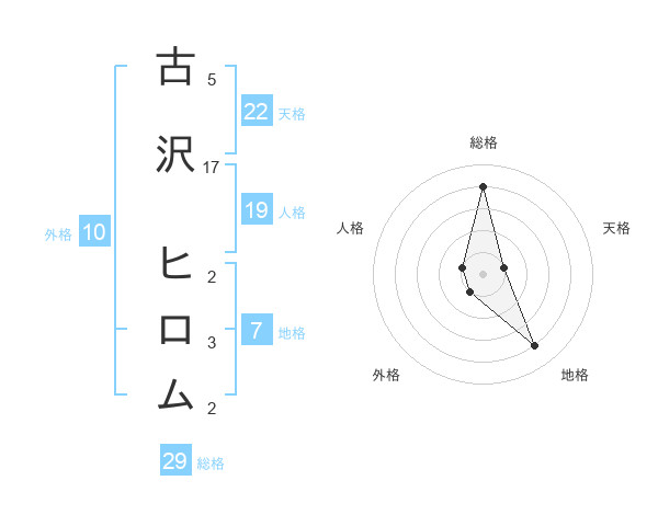 古沢 ヒロムさんを姓名の画数から五運を鑑定