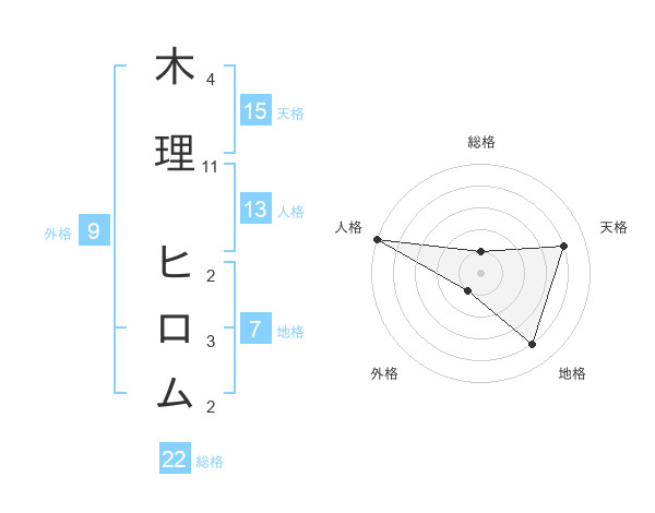 木理 ヒロムさんを姓名の画数から五運を鑑定