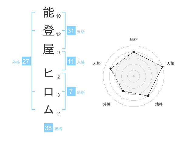 能登屋 ヒロムさんを姓名の画数から五運を鑑定