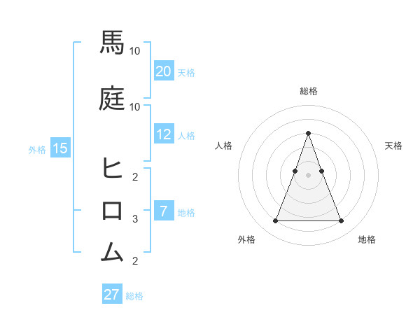 馬庭 ヒロムさんの総格は27画の3点!