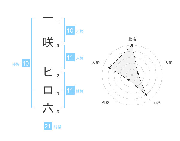 一咲 ヒロ六さんの総格は21画の5点!