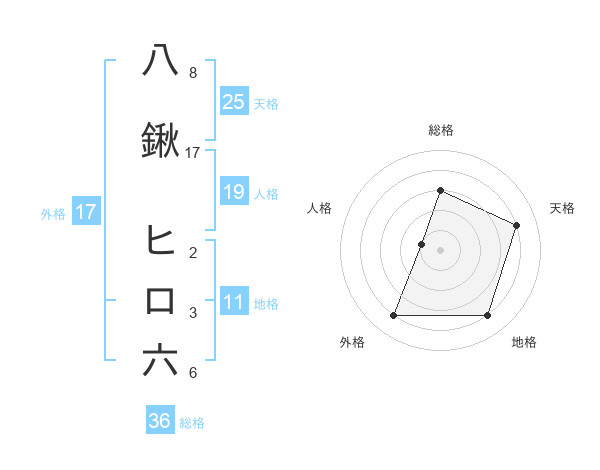 八鍬 ヒロ六さんの外格は17画の4点!