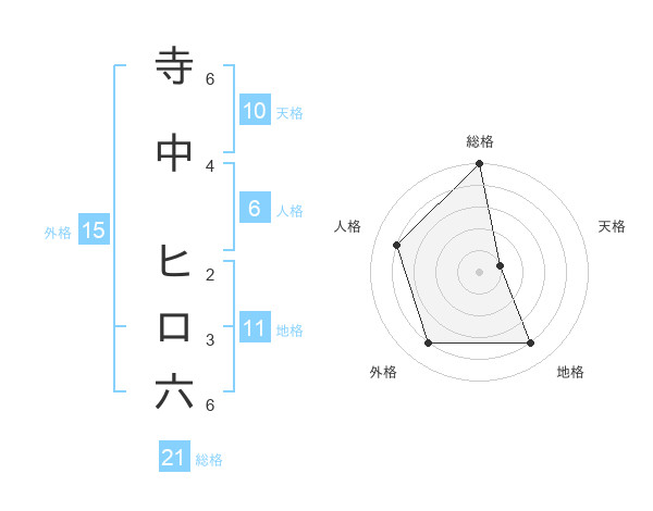 寺中 ヒロ六さんの総格は21画の5点!