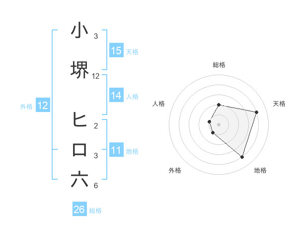 小堺 ヒロ六さんの天格は15画の4点!
