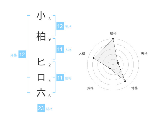 小柏 ヒロ六さんの総格は23画の5点!