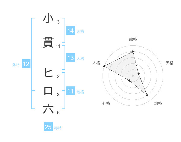 小貫 ヒロ六さんの総格は25画の4点!