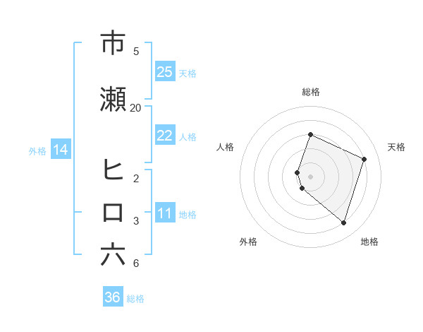市瀬 ヒロ六さんの天格は25画の4点!