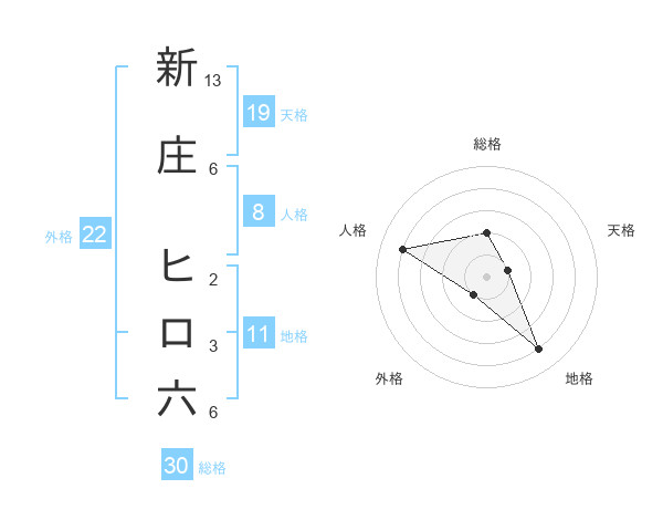 新庄 ヒロ六さんの外格は22画の1点!