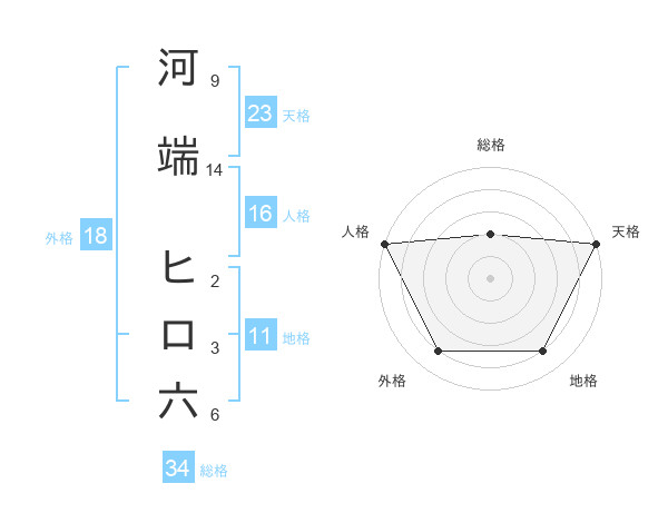 河端 ヒロ六さんの天格は23画の5点!