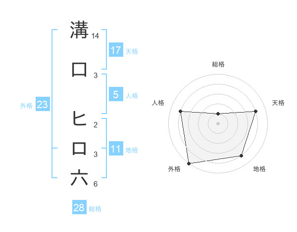 溝口 ヒロ六さんの外格は23画の5点!