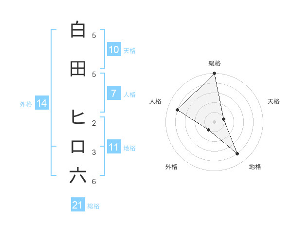 白田 ヒロ六さんを姓名の画数から五運を鑑定