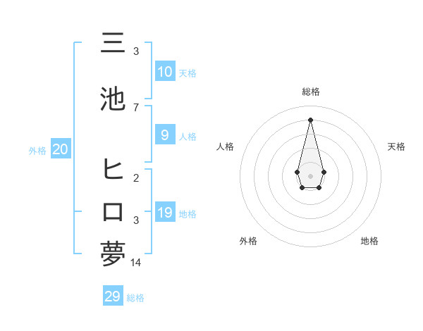 三池 ヒロ夢さんを姓名の画数から五運を鑑定