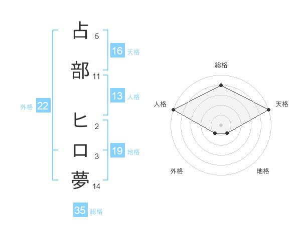 占部 ヒロ夢さんの総格は35画の4点!
