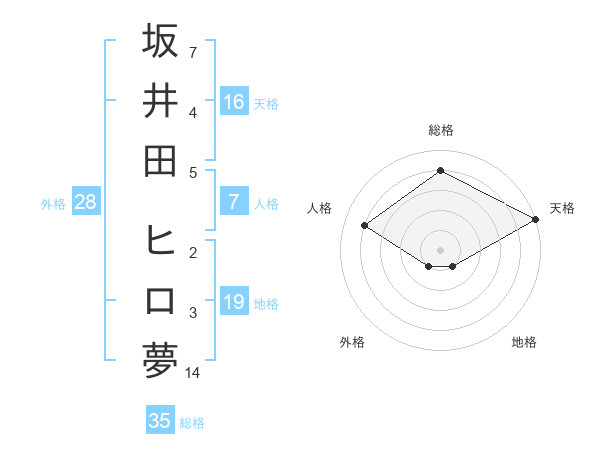坂井田 ヒロ夢さんの総格は35画の4点!