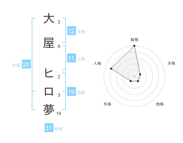 大屋 ヒロ夢さんを姓名の画数から五運を鑑定