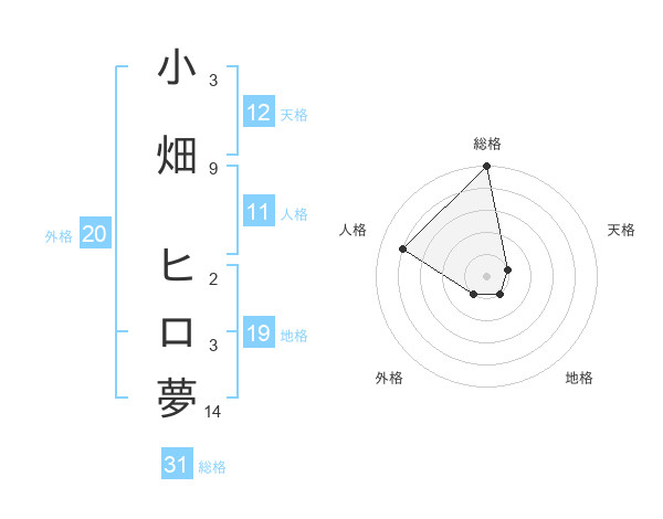 小畑 ヒロ夢さんを姓名の画数から五運を鑑定