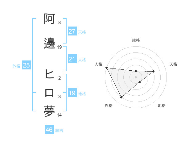 阿邊 ヒロ夢さんの天格は27画の3点!