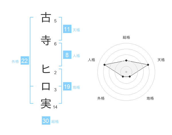 古寺 ヒロ実さんの外格は22画の1点!
